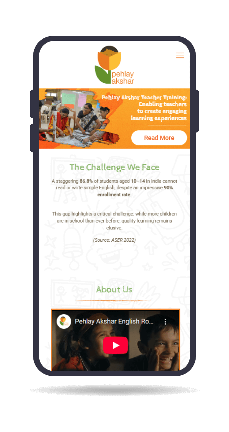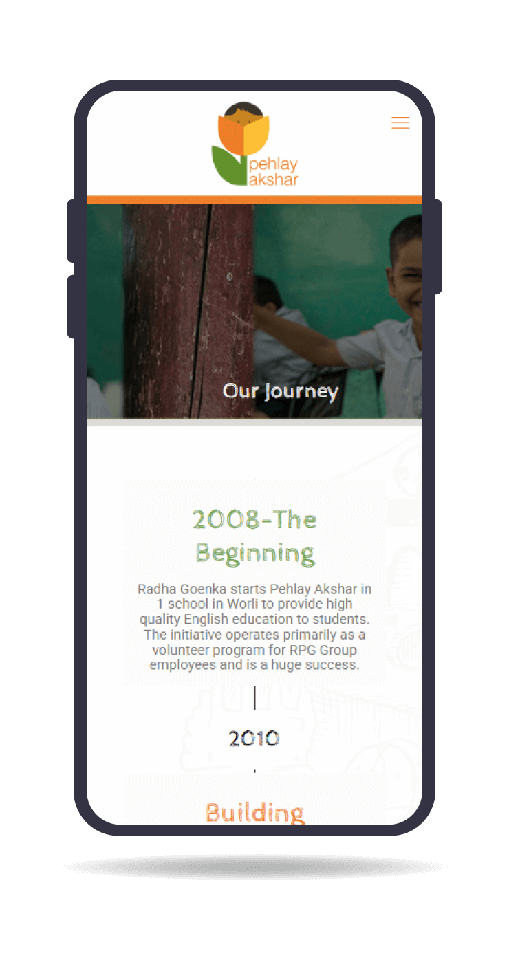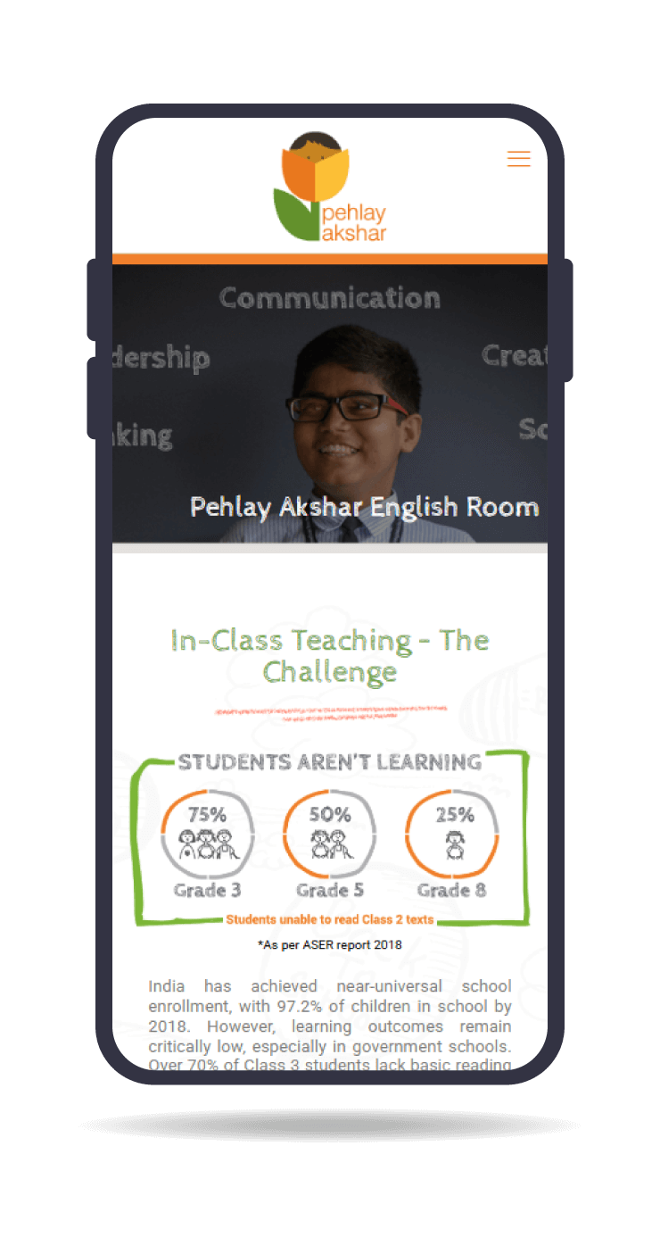 'Pehlay Akshar' is an RPG Foundation's CSR initiative. RPG Foundation is a non-profit organization and the Corporate Social Responsibility (CSR) division of the RPG Group of companies. It is passionate about improving the quality of life of local communities and works by identifying critical need gaps, thus maximizing social impact. Pehlay Akshar schooling & training program aims at improving functional English language proficiency in children at government schools and training teachers with a single-minded focus on promoting future employability.